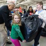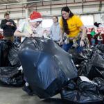 Jordan Bailey, 11, lifts a large bag of Christmas toys as he volunteers to help distribute Toys for Tots bags of gifts to over 200 local families at the “North Pole” in the Metals and More building off Veterans Memorial on the final distribution day for Warren County residents on Saturday, Dec. 20, 2025. More than 825 families total received gifts through Toys for Tots this year. (Grace McDowell)