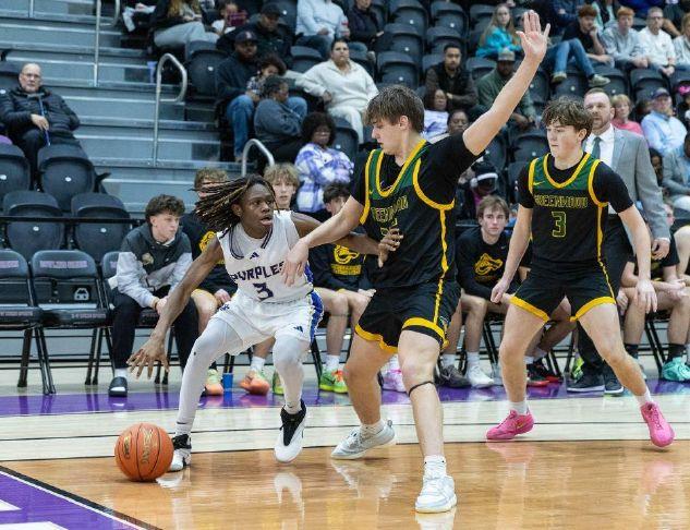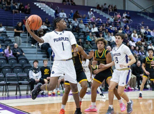 Down 37-20, the Purples turned to freshman Anthony Davis to bring them back. The talented multi-sport athlete who also starts at quarterback during football season scored eight points during a 12-0 surge that got BG back within five at 37-32 with 2:48 left in the third.