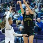 Bowling Green’s Jooniper Strow (20) shoots a three-pointer over Greenwood’s Molly Spidel (12) in the Lady Purples’ 55-29 win over the Lady Gators at Bowling Green High School on Friday, Jan. 9, 2026. (GRACE McDOWELL / Bowling Green Daily News)