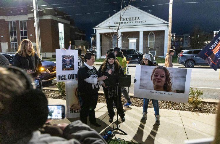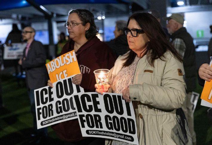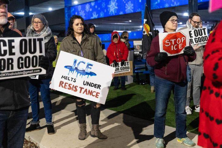 The protest, put on by SOKY Solidarity, SOKY Indivisible and other local groups, comes after Renee Nicole Good was shot on Wednesday by an ICE agent in Minneapolis. The event led to demonstrations taking place there and in major cities across the United States.