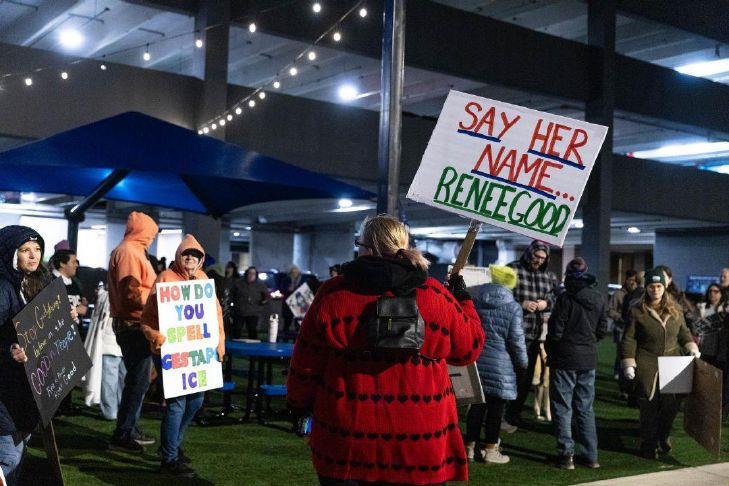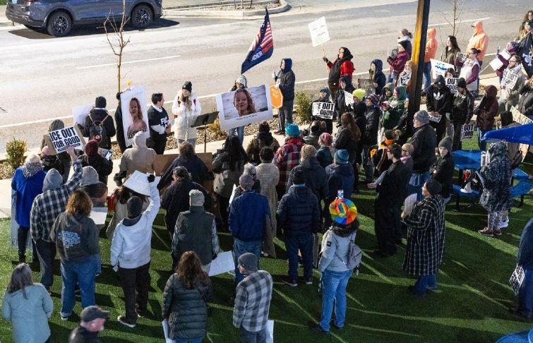 “Renee was a human being, … a neighbor, a mother, a member of a community that deserved safety, dignity, and life,” protest organizer Ayla Jo Newton told the group. “Instead, she became another name added to a growing list of people killed by a government agency that claims to protect us while terrorizing our community.”