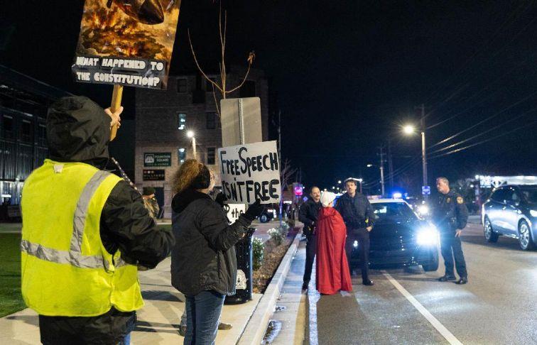 Bowling Green Police ask protesters to move their vehicles off East Eighth Avenue as around 100 protesters with SOKY Solidarity, SOKY Indivisible and other local groups gather at The Fringe outside the downtown parking garage on Saturday evening, Jan. 10, 2026, to speak out against Immigration and Customs Enforcement as part of a nationwide wave of protests after Renee Nicole Good was shot on Wednesday by an ICE agent in Minneapolis. (GRACE McDOWELL / BOWLING GREEN DAILY NEWS)