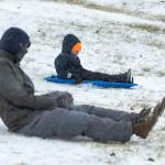 Jonah Lange, 7, and his father Jacob sled down Hospital Hill as snow falls around Bowling Green on Saturday, Jan. 24, 2026. (GRACE McDOWELL / The Daily News)