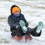 Jonah Lange, 7, sleds down Hospital Hill as snow falls around Bowling Green on Saturday, Jan. 24, 2026. (GRACE McDOWELL / The Daily News)