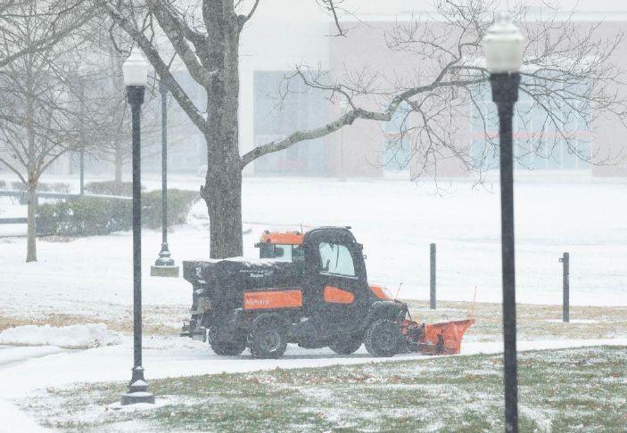 Western Kentucky University maintenance crews plow snow off the sidewalks through campus on Saturday, Jan. 24, 2026, as snow continues to fall around Bowling Green. (GRACE McDOWELL / The Daily News)