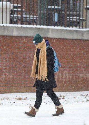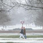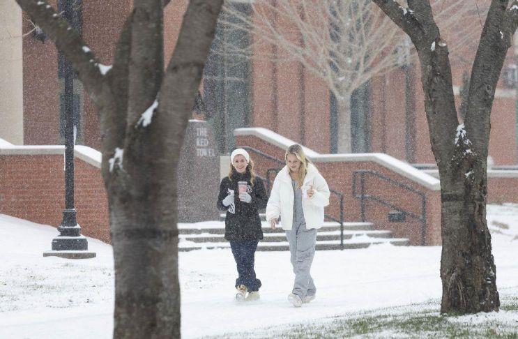 Western Kentucky University students walk through campus on Saturday morning, Jan. 24, 2026, as snow falls around Bowling Green. (GRACE McDOWELL / The Daily News)