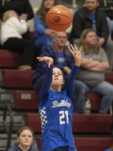 Abby Davis and Crista Thacker scored five points each to pace the Lady Bulldogs.