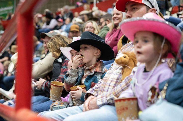Children watch as cowboys and girls compete in a variety of events at the 44th annual Lone Star Championship Rodeo at the L.D. Brown Agricultural Exposition Center on Friday night, Feb. 13, 2026. The rodeo continues throughout the weekend with shows on Saturday at 2 and 8 p.m. and on Sunday at 2 p.m. (GRACE McDOWELL / The Daily News)