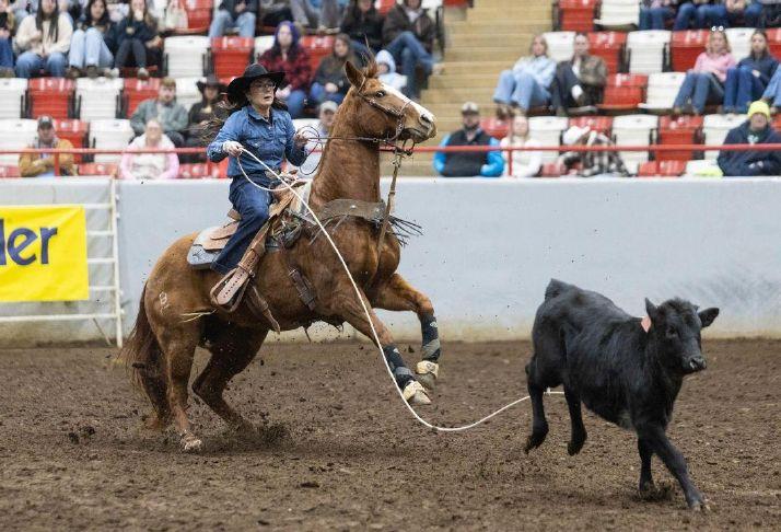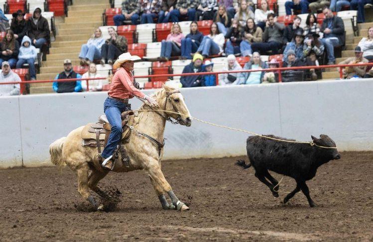 Sarah Brown of Rosedale, Ind., competes in the breakaway roping event at the 44th annual Lone Star Championship Rodeo at the L.D. Brown Agricultural Exposition Center on Friday night, Feb. 13, 2026. The rodeo continues throughout the weekend with shows on Saturday at 2 and 8 p.m. and on Sunday at 2 p.m. (GRACE McDOWELL / The Daily News)