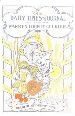 The front-page illustration highlighted what Warren County was known for then: tobacco, corn, wheat, oats, strawberries, fruit, mules, “blooded stock” — apparently a reference to horses bred for racing, as well as building stone and education.