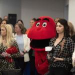 Big Red grins as attendees listen to speakers during a ribbon cutting ceremony for Fifth Third Bank’s first ever location in Bowling Green on Thursday. (JACK DOBBS / Daily News)
