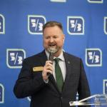 Bowling Green Mayor Todd Alcott addresses a crowd of bank personnel and representatives from the Bowling Green Area Chamber of Commerce during a ribbon cutting ceremony for Fifth Third Bank’s first ever location in Bowling Green on Thursday. (JACK DOBBS / Daily News)