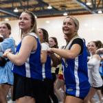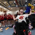 Graycyn Poland, 11, from Scottsville, flashes a huge smile as Western Kentucky University students on the Blue Team cheer for her during the 12th annual Dance Big Red dance marathon benefiting Norton Children’s Hospital in WKU’s Raymond B. Preston Health & Activities Center on Friday, March 6, 2026. The WKU students raised $141,555.32 for pediatric cardiovascular services and pediatric cancer care at Norton Children’s Hospital. (Grace McDowell / The Daily News)