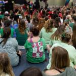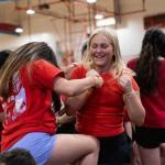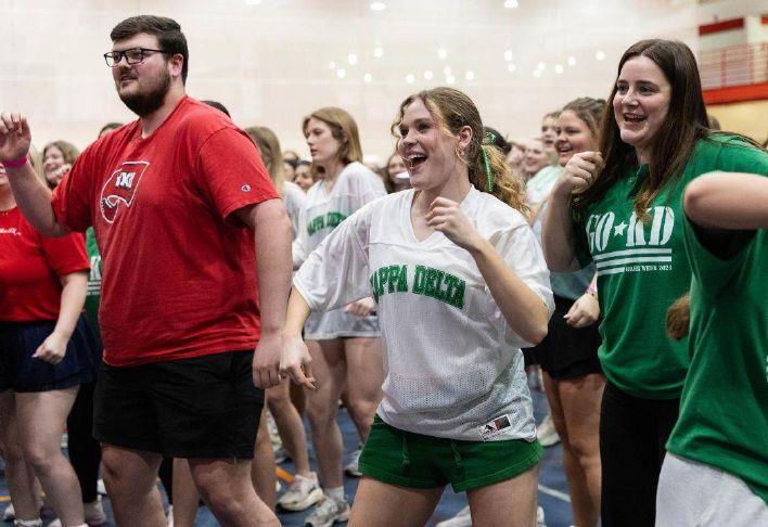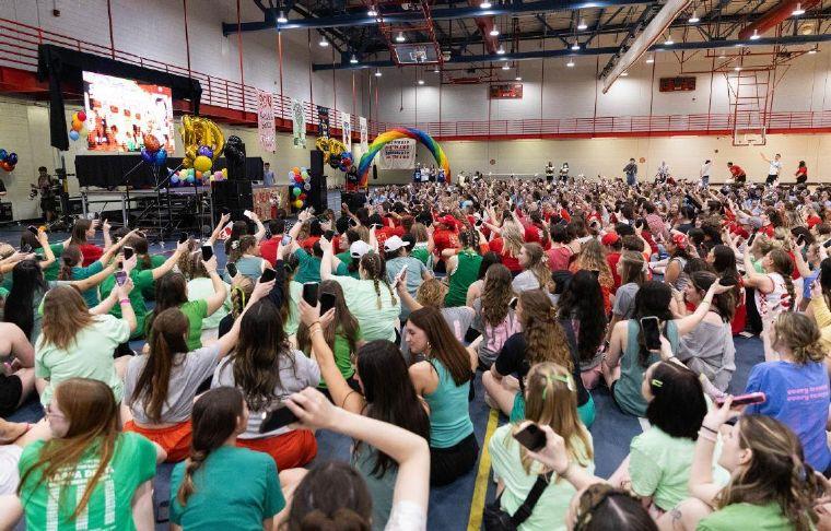 Hundreds of Western Kentucky University students gather in the Raymond B. Preston Health & Activities Center for the 12th annual Dance Big Red dance marathon benefiting Norton Children’s Hospital on Friday, March 6, 2026. The WKU students raised $141,555.32 for pediatric cardiovascular services and pediatric cancer care at Norton Children’s Hospital. (Grace McDowell / The Daily News)