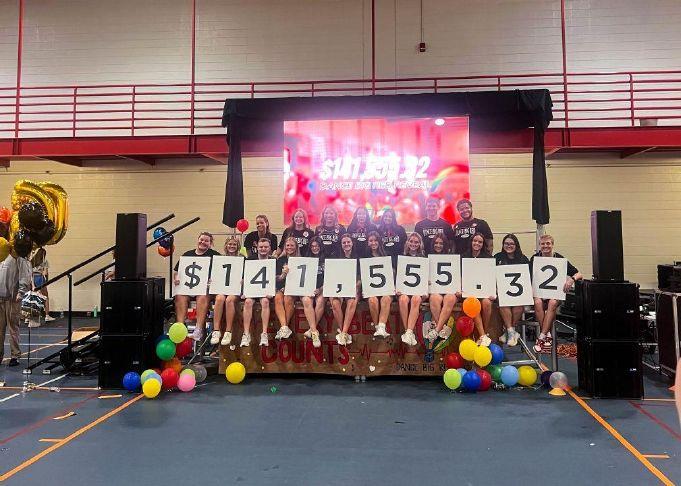 Western Kentucky University students reveal that $141,555.32 was raised for pediatric cardiovascular services and pediatric cancer care at Norton Children’s Hospital during the 12th annual Dance Big Red dance marathon in WKU’s Raymond B. Preston Health & Activities Center on Friday, March 6, 2026.
